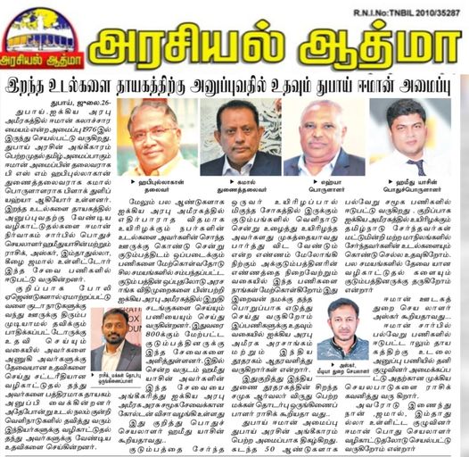 அரசியல் ஆத்மா நாளிதழ் – முதன்மை செய்தியாளர்