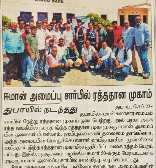 #Events ஈமான் கலாச்சார மையம் சார்பாக நடைபெற்ற ரத்ததான முகாம் Iman Media Wing / 1 year January 13, 2025 0 0 min read Share:
